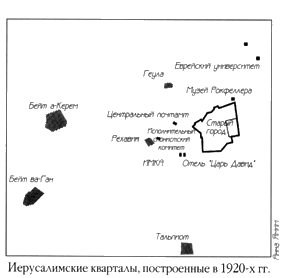 В 1873 году не только евреи жили за пределами стен Иерусалима. Русское подворье, упомянутое выше, было построено в I860 г. на северо-запад от Яффских ворот и состояло из собора, гостиницы и больницы. В 1878 году группа немецких христиан (тамплиеры) построила собственный квартал -Немецкую колонию, а в 1881 американские христиане построили Американскую колонию. Но быстрее всех рос Еврейский квартал.